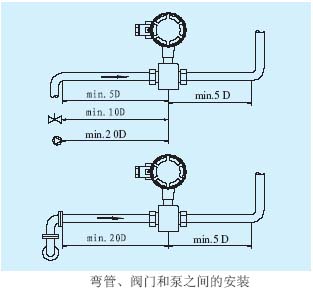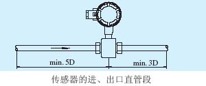 比较理想的安装地点应选择测量点前后有足够的直管段。进口直管段应≥5D,出口直管段≥3D(D为传感器公称口径)。