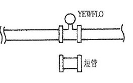 (1)设计流量计的安装管道时,应设计旁路管道,方便拆卸、维修和调试。新安装的管道或维修过的管道,运行前应冲洗掉管内的铁锈、水垢渣和污泥。如没有旁通管,可暂装短管来代替流量计(见图5)。